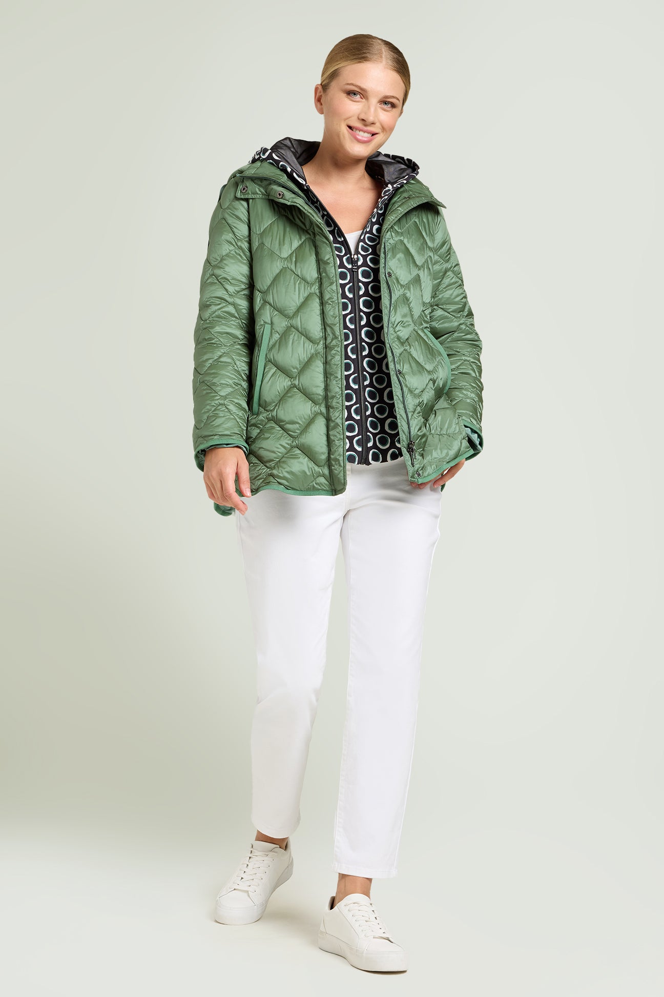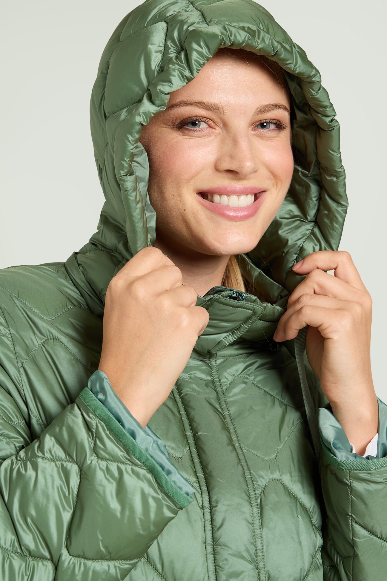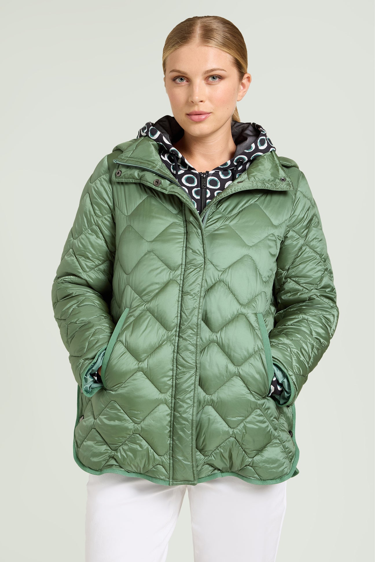 PIUMINO CON SPACCHI E CAPPUCCIO STACCABILE