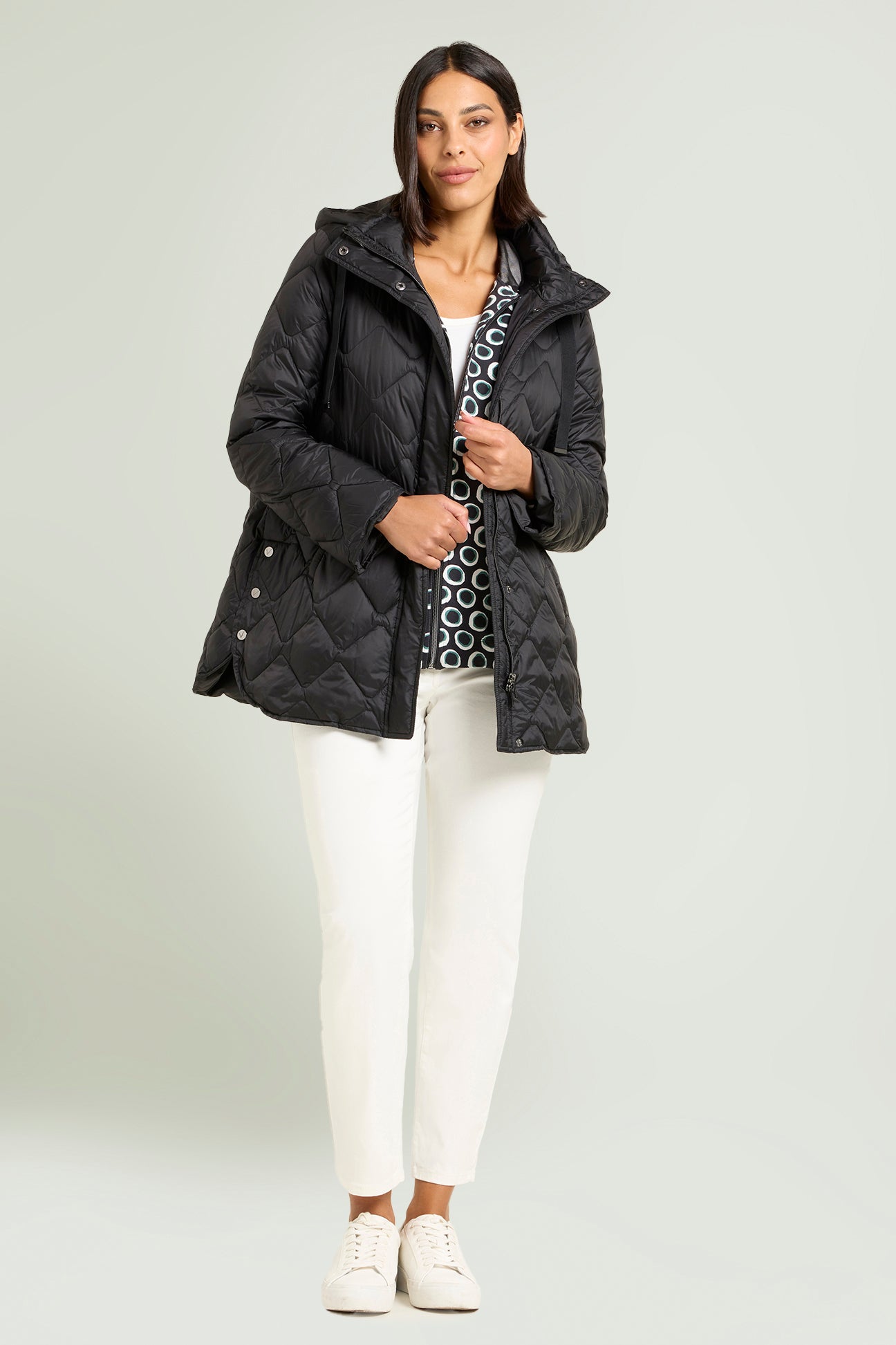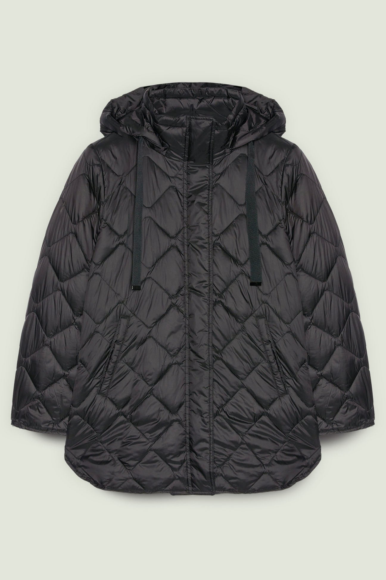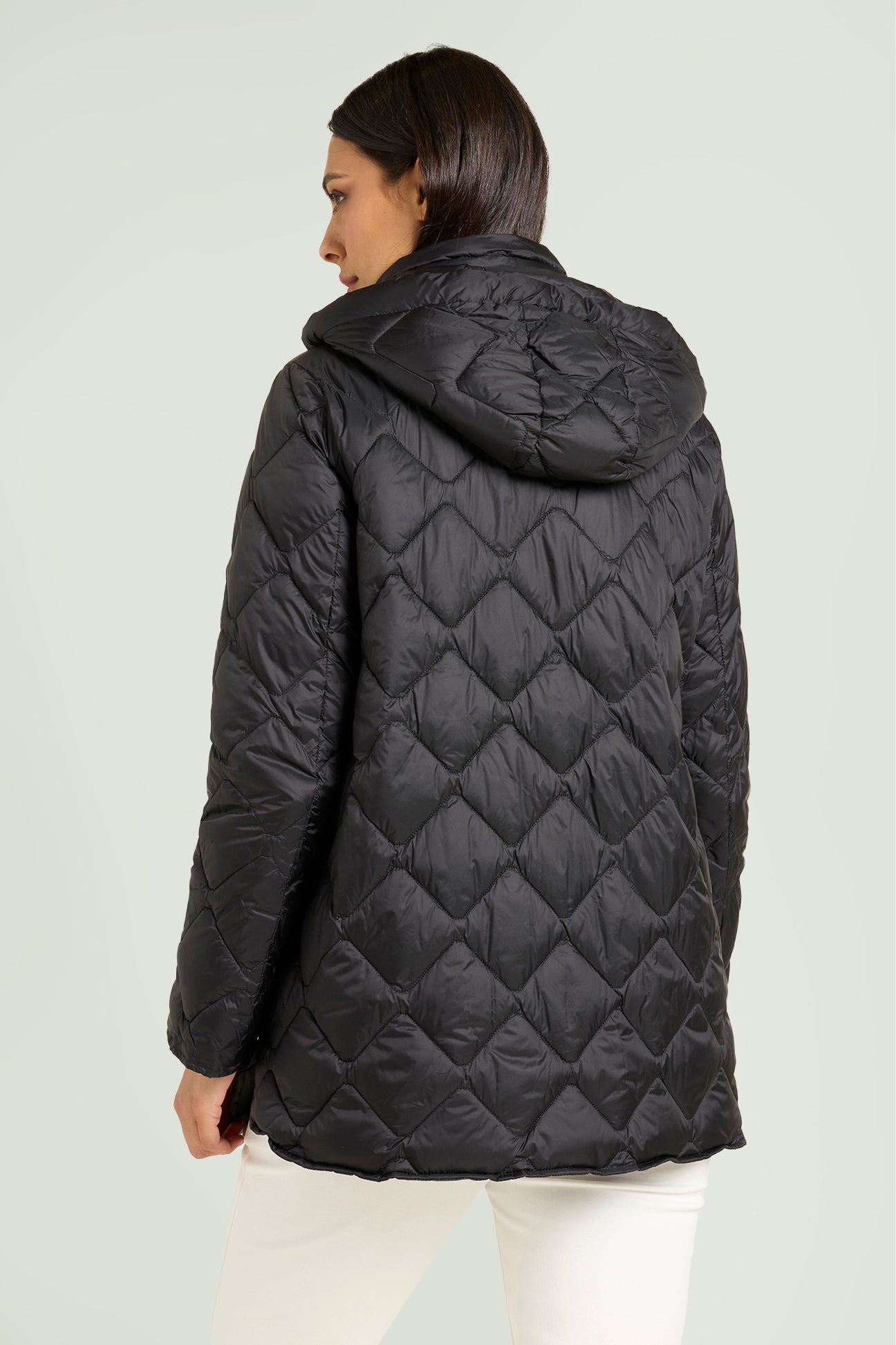 PIUMINO CON SPACCHI E CAPPUCCIO STACCABILE