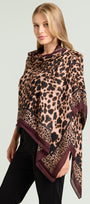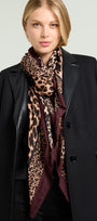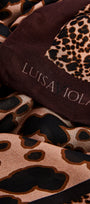 Sciarpa-foulard fantasia in twill di modal, cm.80 x 190. Il maculato -trend di stagione- viene reinterpretato in modo femminile con un armonico movimento grafico, dove il nero ed il mocha mousse si sposano ad un delicato beige rosato. Una stampa esclusiva Luisa Viola.