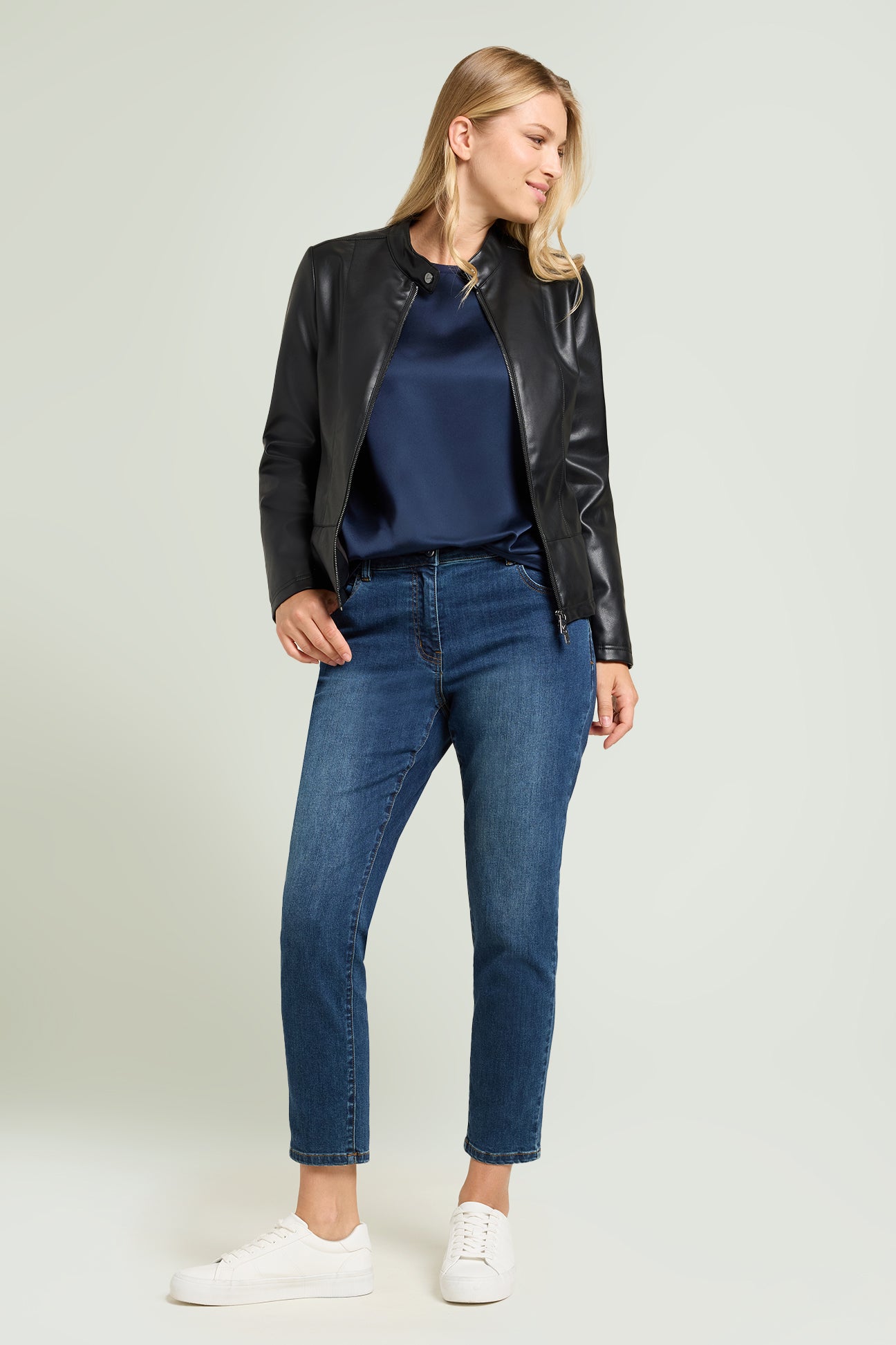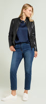 Una t-shirt passepartout con il tocco prezioso del raso. Vestibilità perfetta grazie al tessuto elasticizzato e alle pinces sul punto seno.